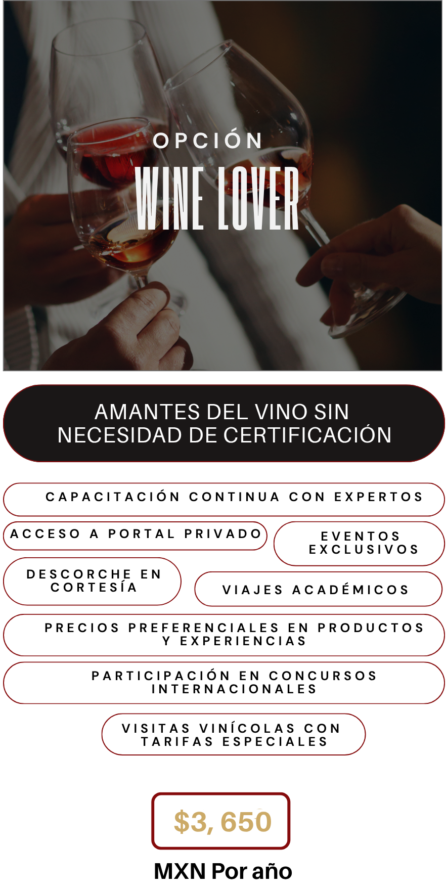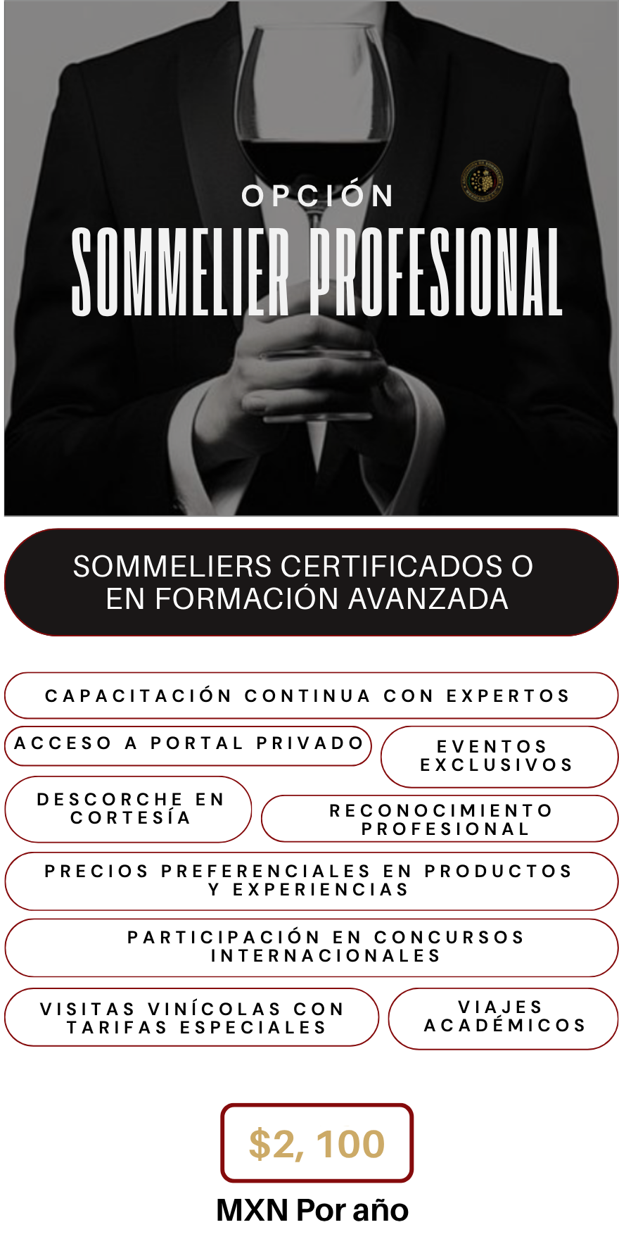 Únete a la comunidad de sommeliers más prestigiosa de México. Accede a experiencias exclusivas, conocimiento especializado y una red profesional única.